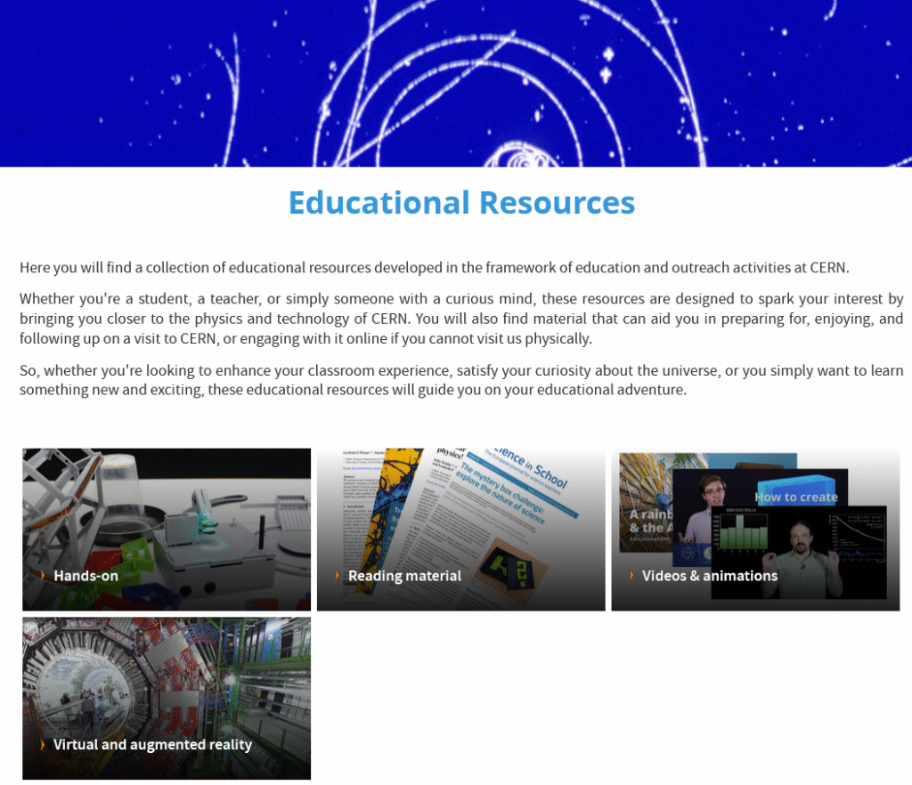 So, whether you’re looking to enhance your classroom experience, satisfy your curiosity about the universe, or simply want to learn something new and exciting, these educational resources will guide you on your educational adventure. Explore our resources at https://educational-resources.web.cern.ch/.